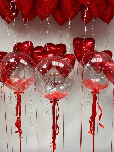 - Определитесь с размером: большой шар-сердце подойдет для грандиозных сюрпризов, а небольшие шарики – для нежного декора.